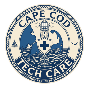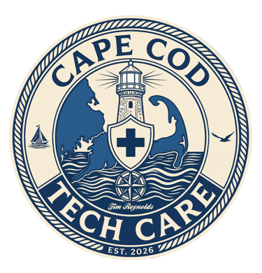 Cape Cod Tech Care is your friendly, local tech partner right here on the Cape. We're not a big chain or remote call center—we're a Cape Cod-based service dedicated to making technology simple, secure, and stress-free for homes and families across the Cape.